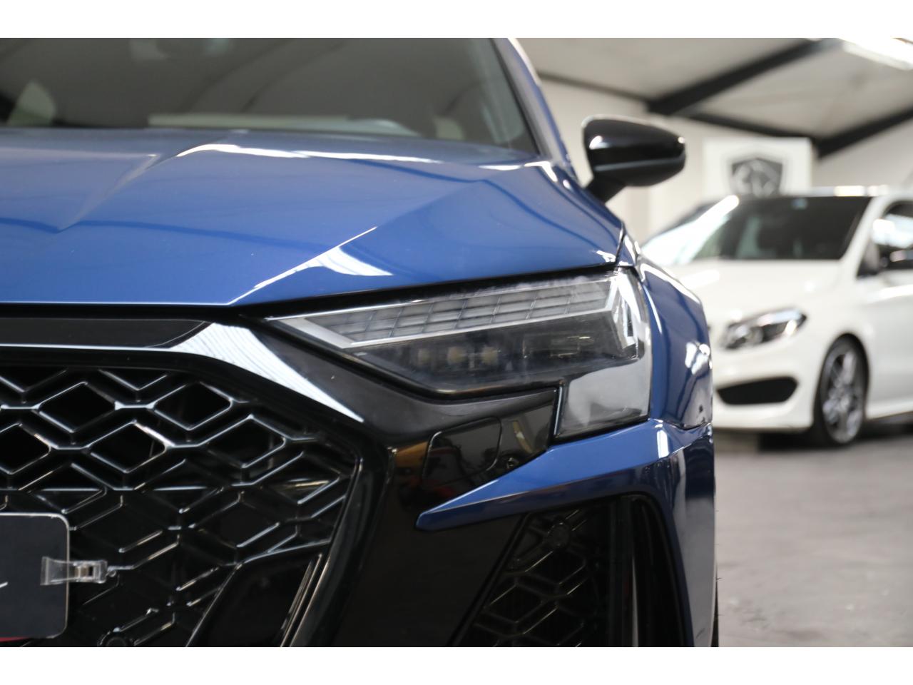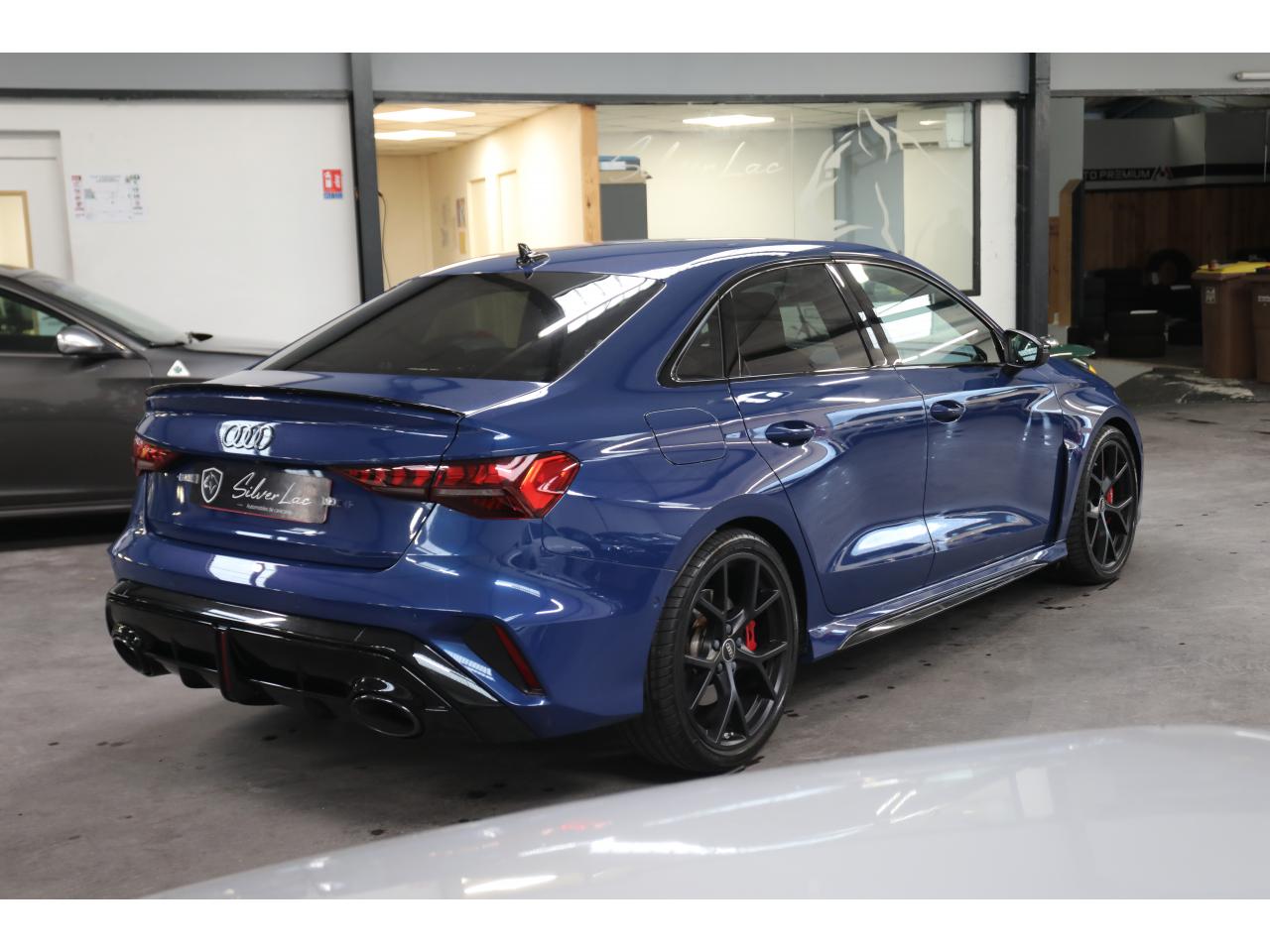 Découvrez cette Audi RS3 Sedan 400 ch, une berline compacte au caractère sportif affirmé qui combine performances pures et efficacité au quotidien.