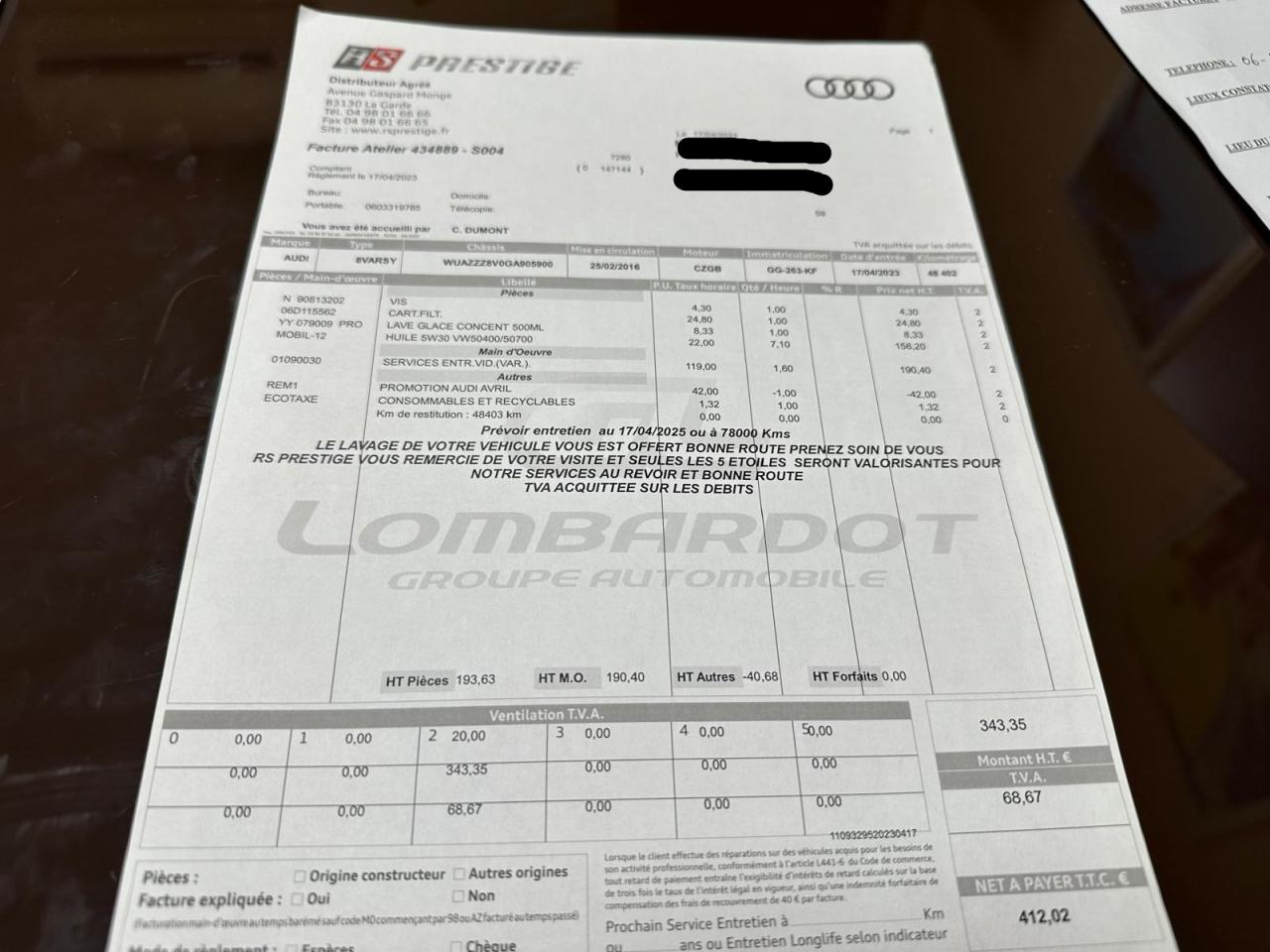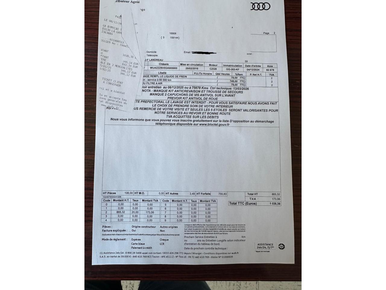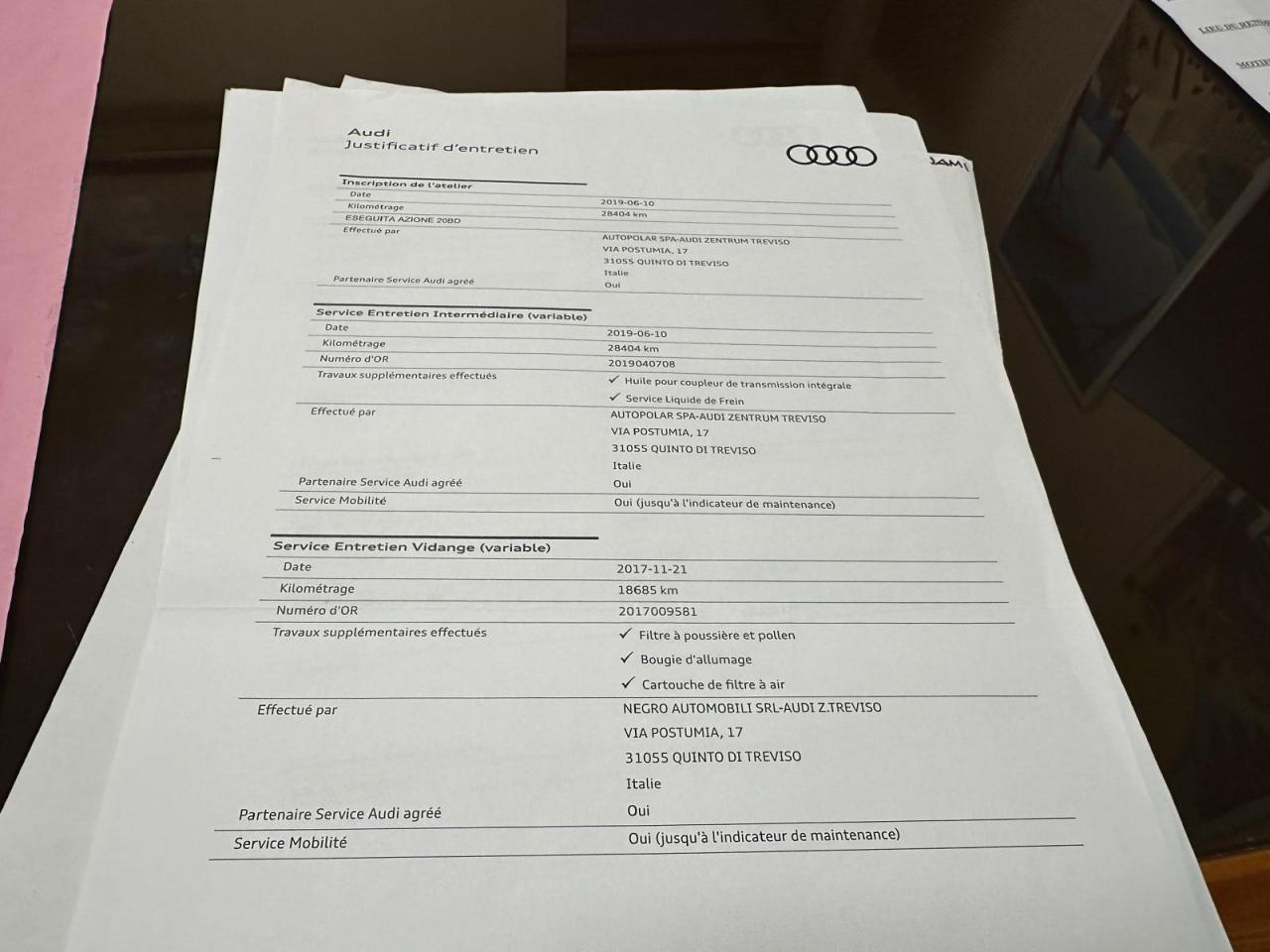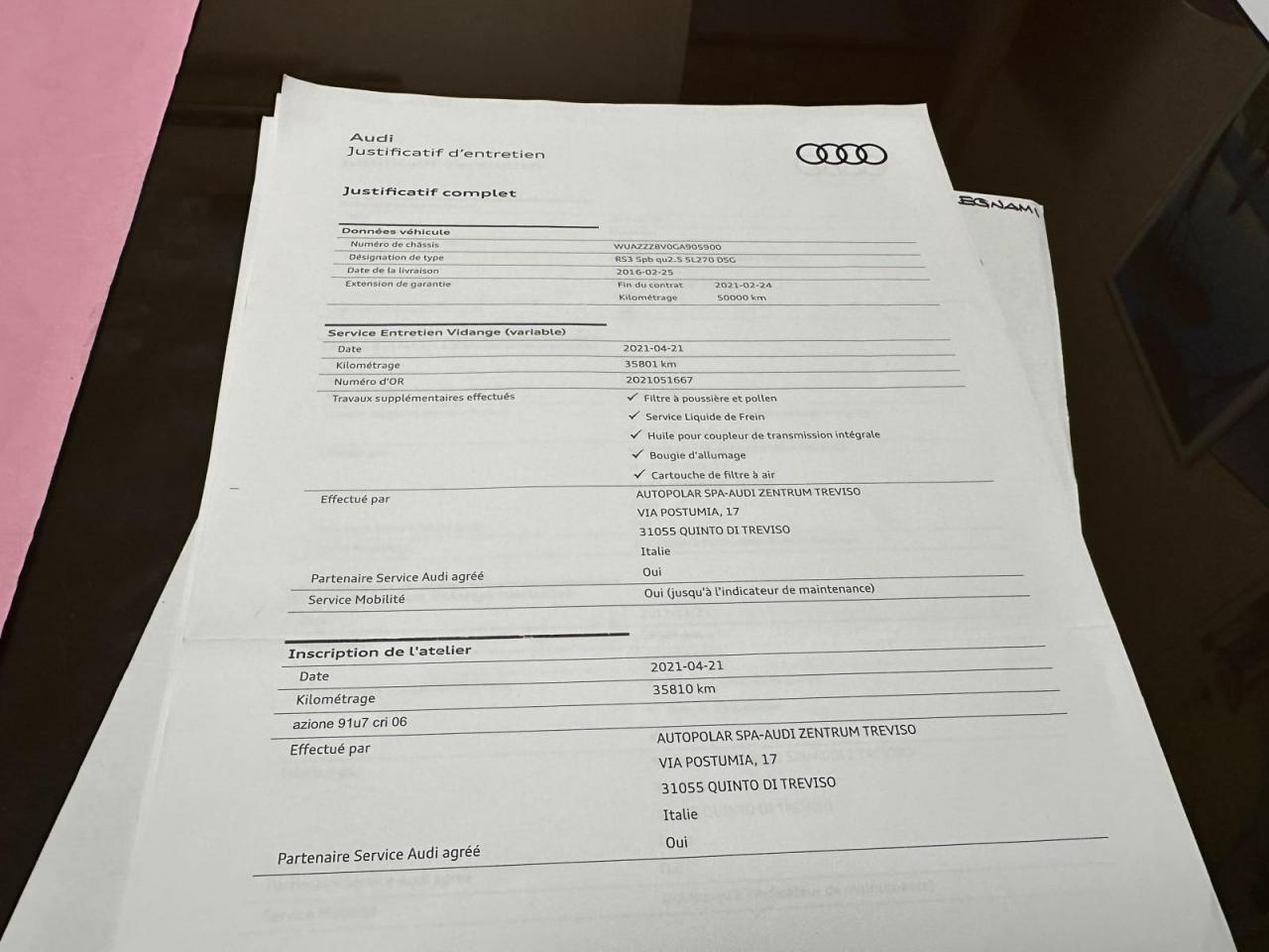 Vidange moteur boite et aldex 17/12/2025 chez AUDI Toulon