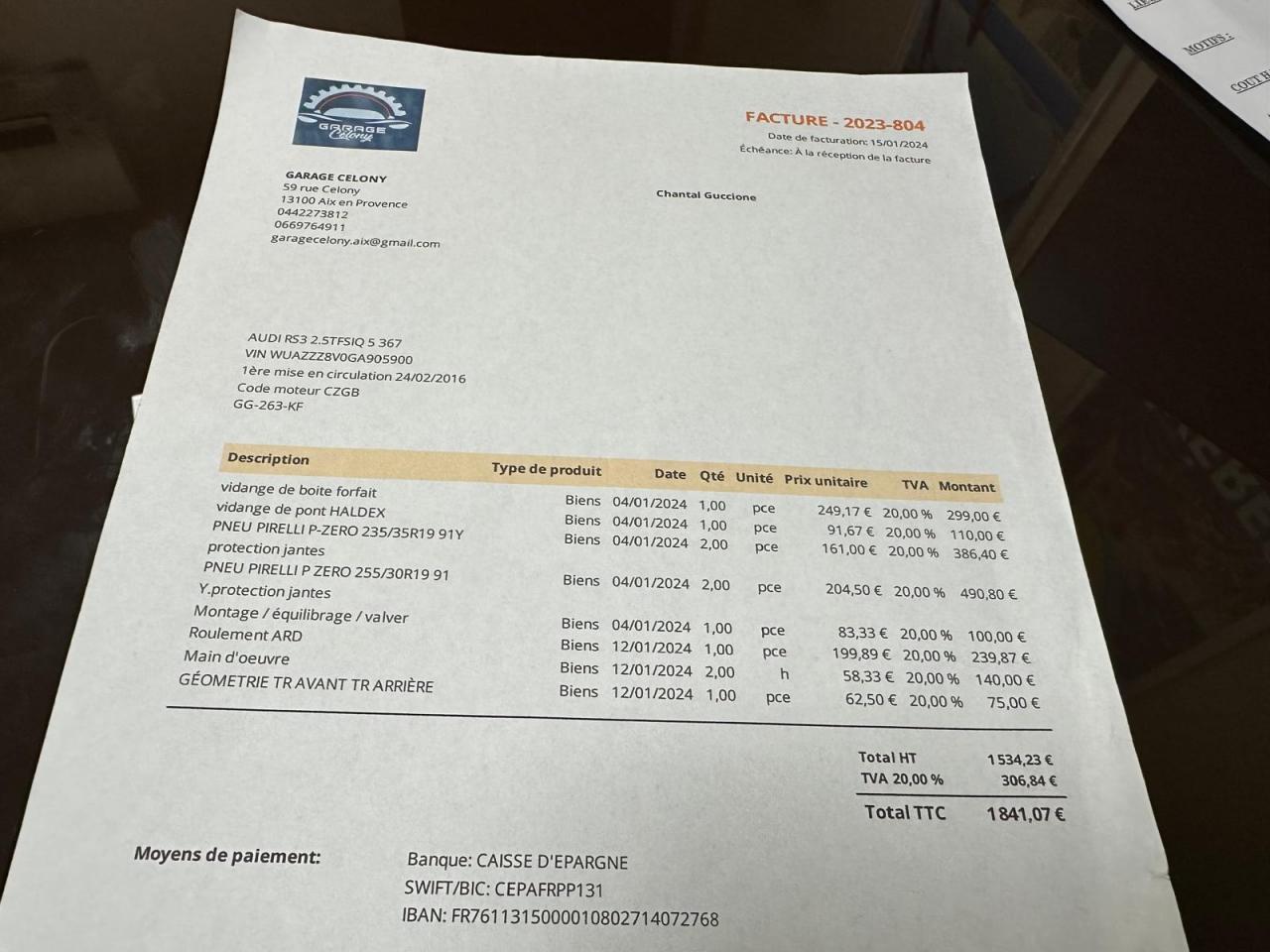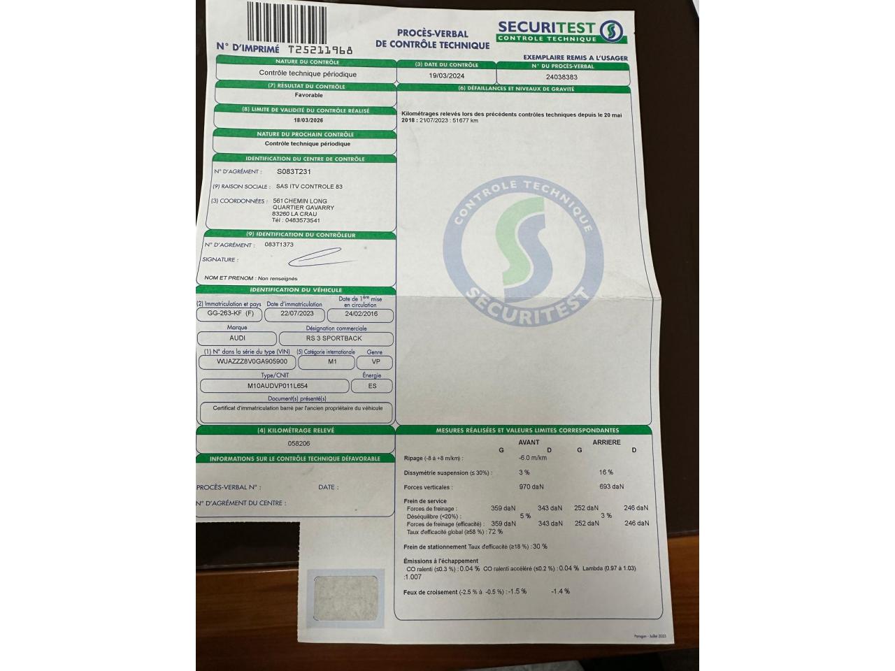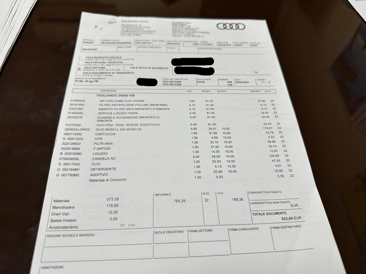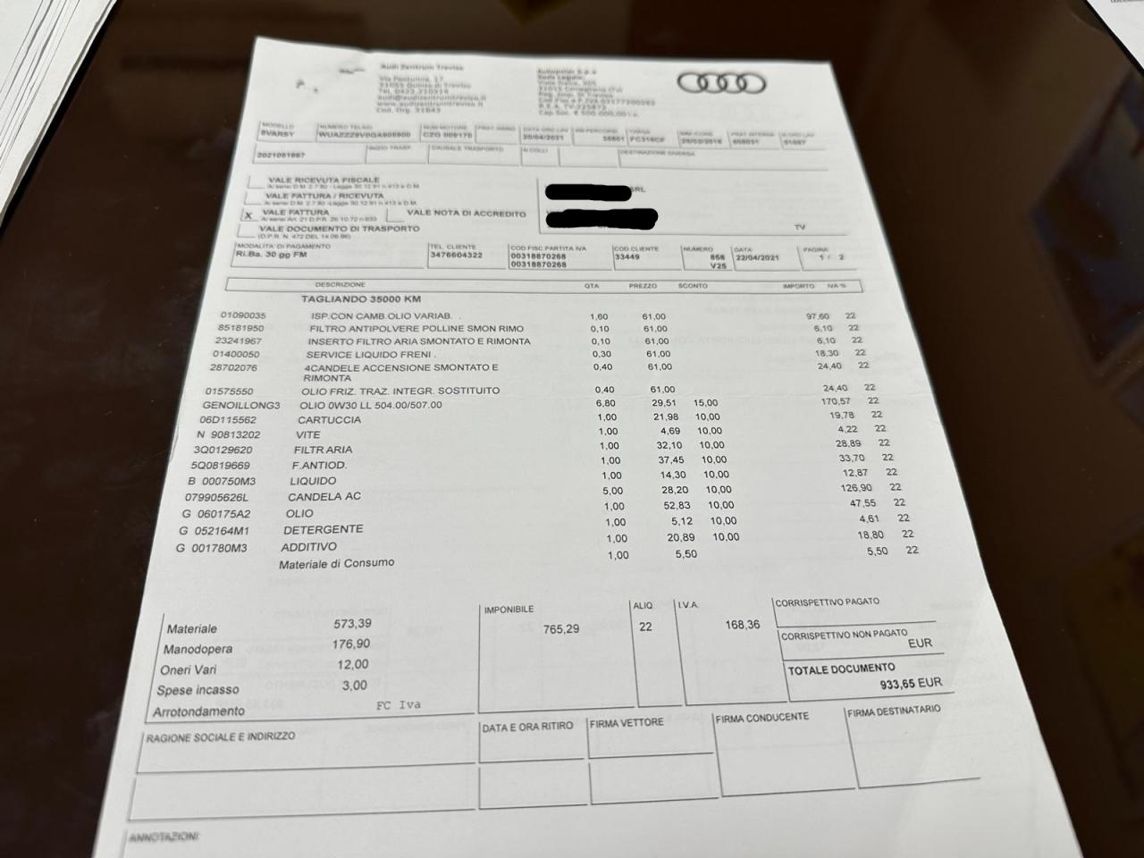 Vidange moteur boite et aldex 17/12/2025 chez AUDI Toulon