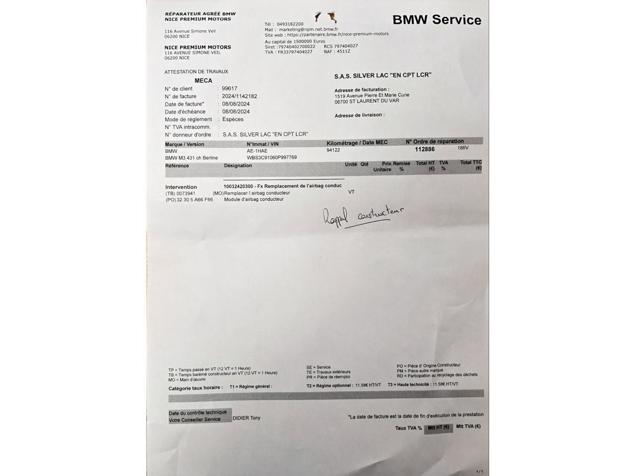 Rappel constructeur BMW 08/2024 réalisé