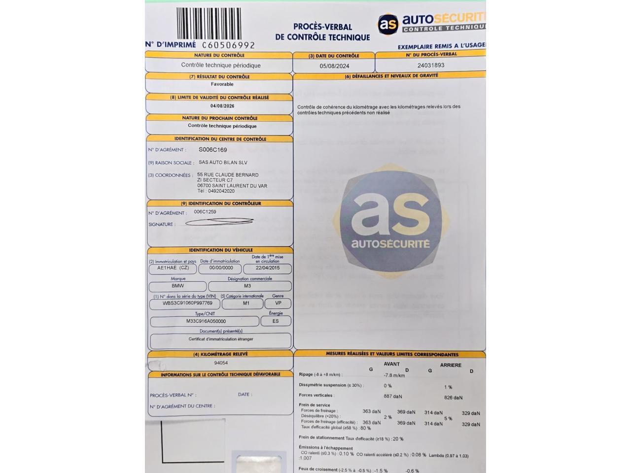 Certificat du kilometrage disponible