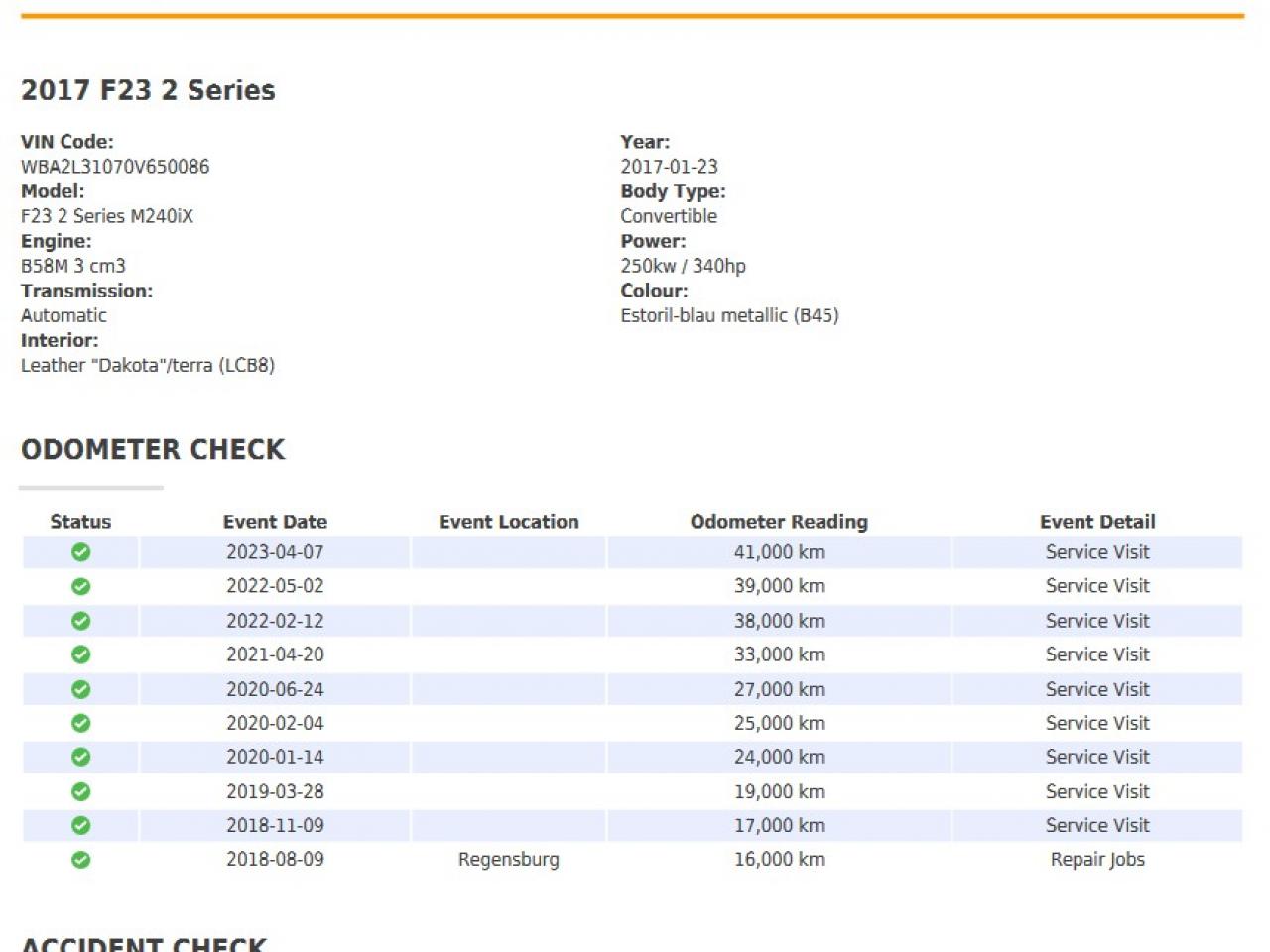 Certificat de kilometrage BMW
