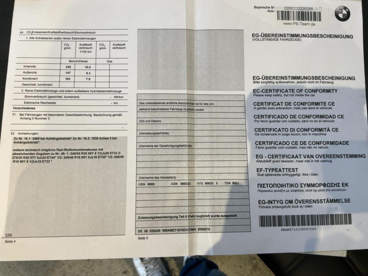 Numéro de série: WBAMZ71010DV67564