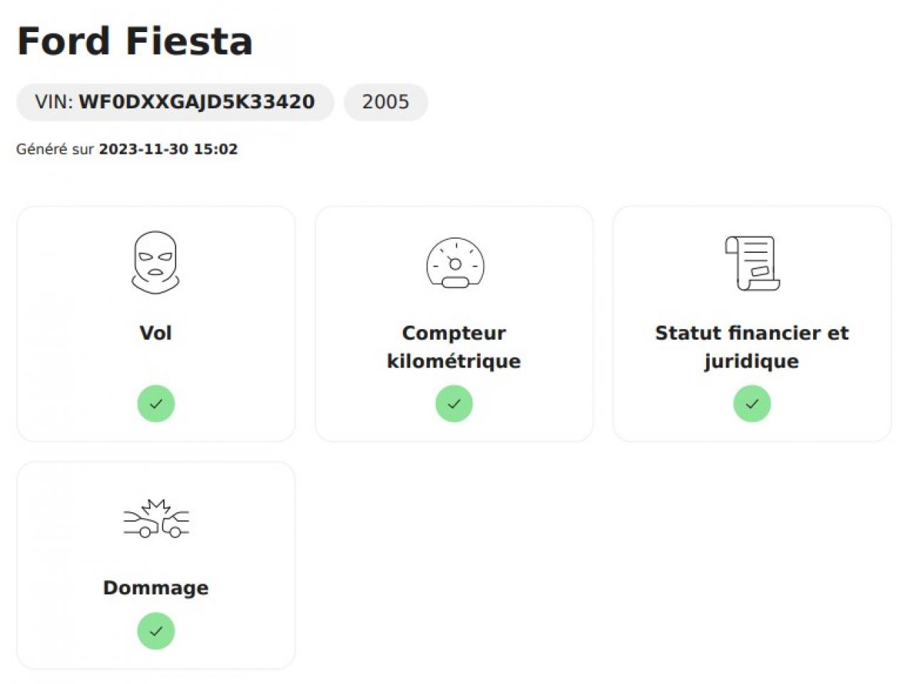 Carvertical disponible (absence d'accident déclaré)