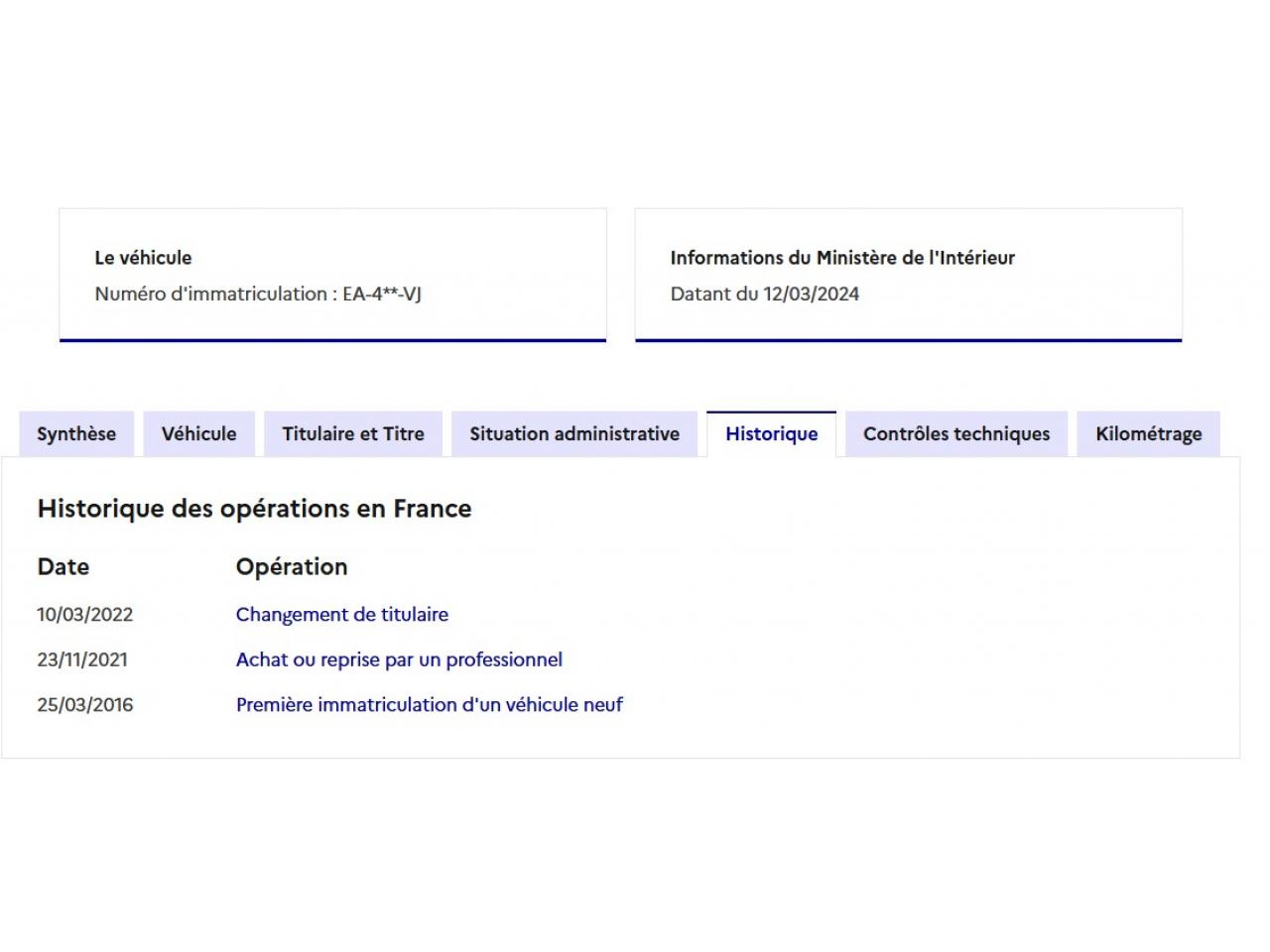 Historique disponible