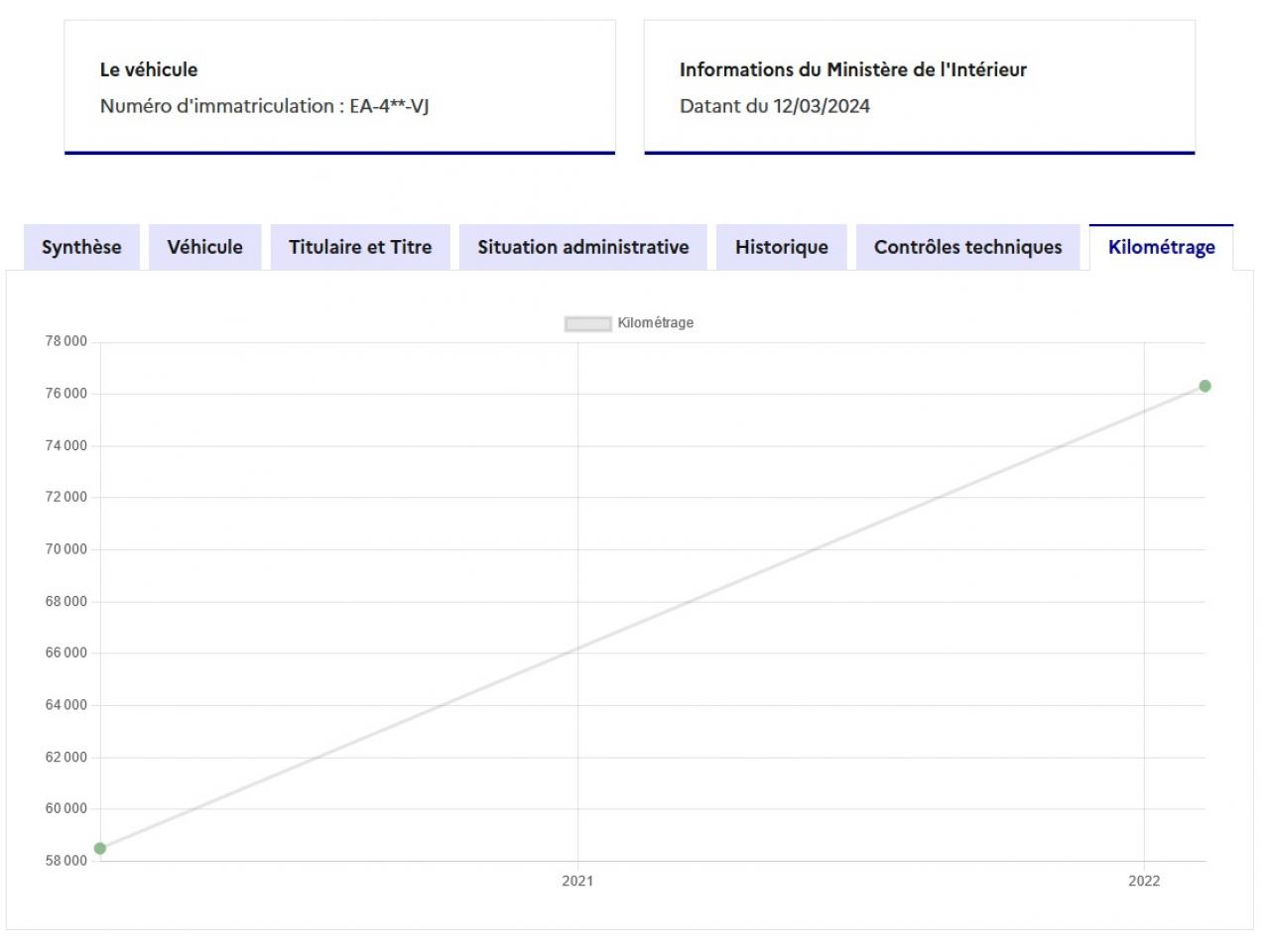 Courbe de kilometrage disponible
