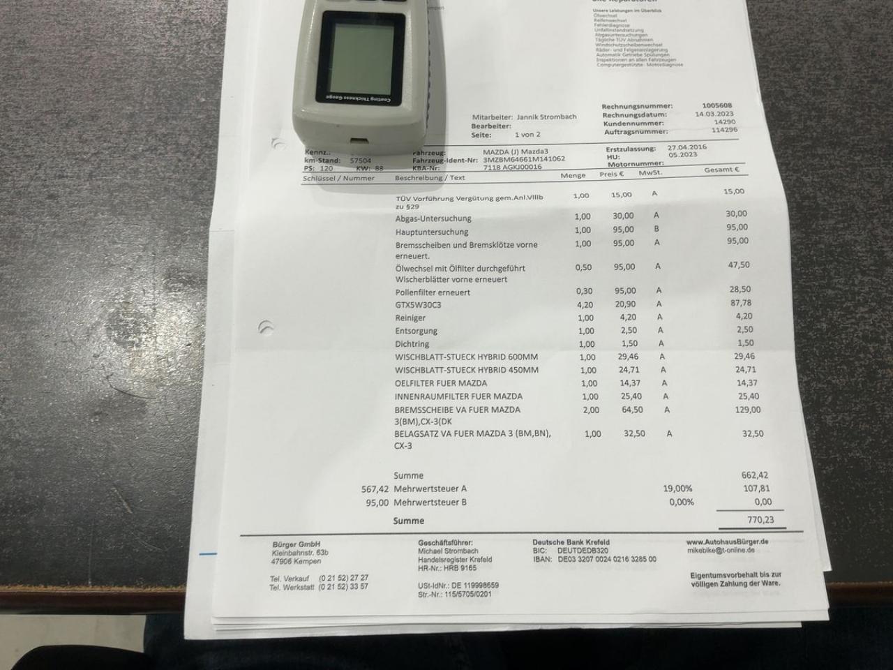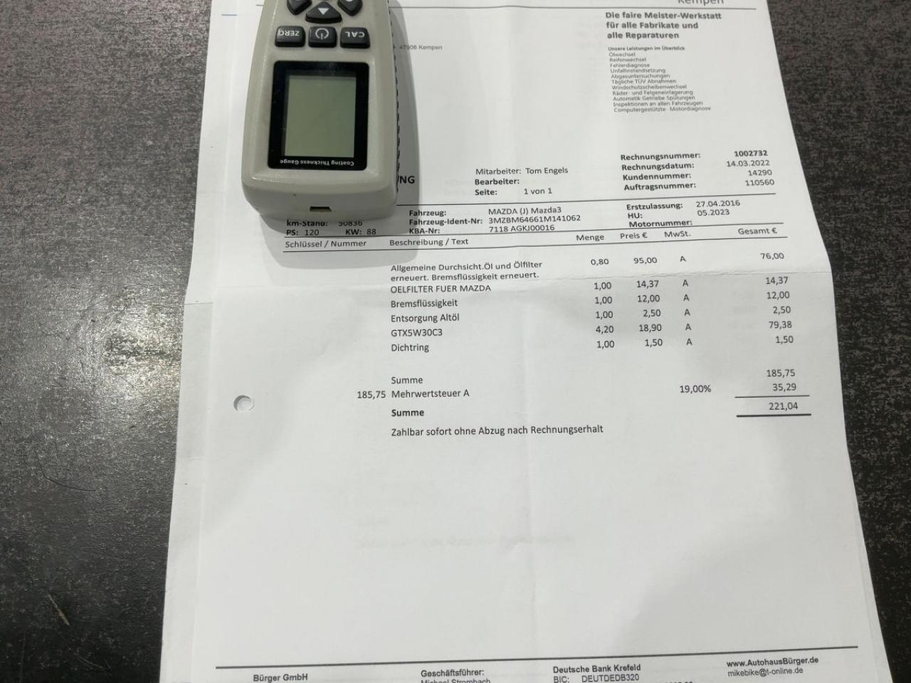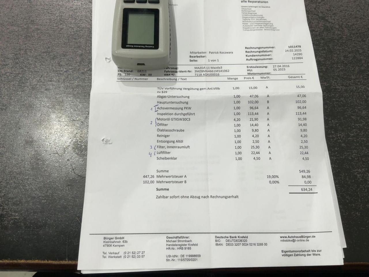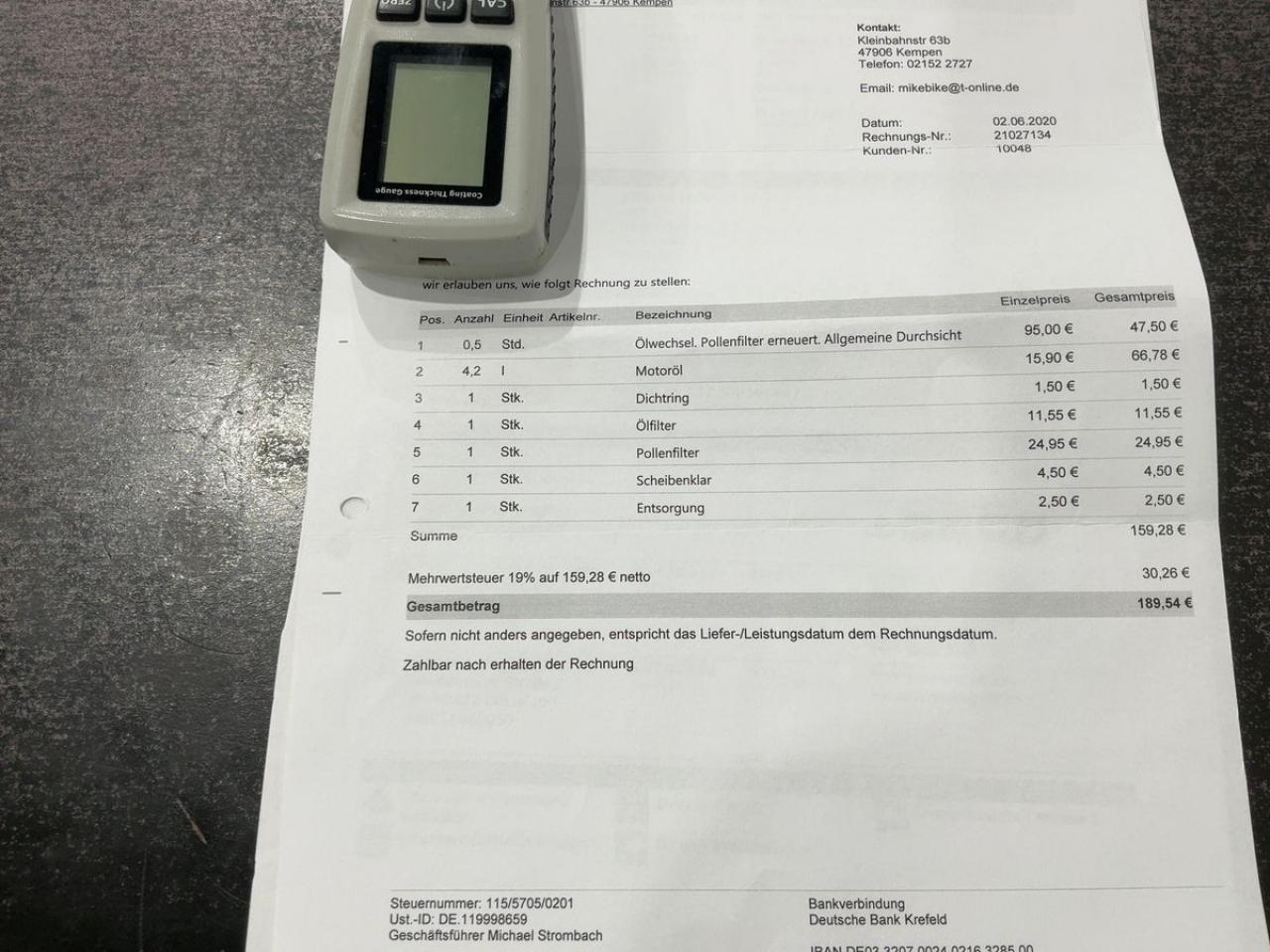 Factures d'entretien disponible
