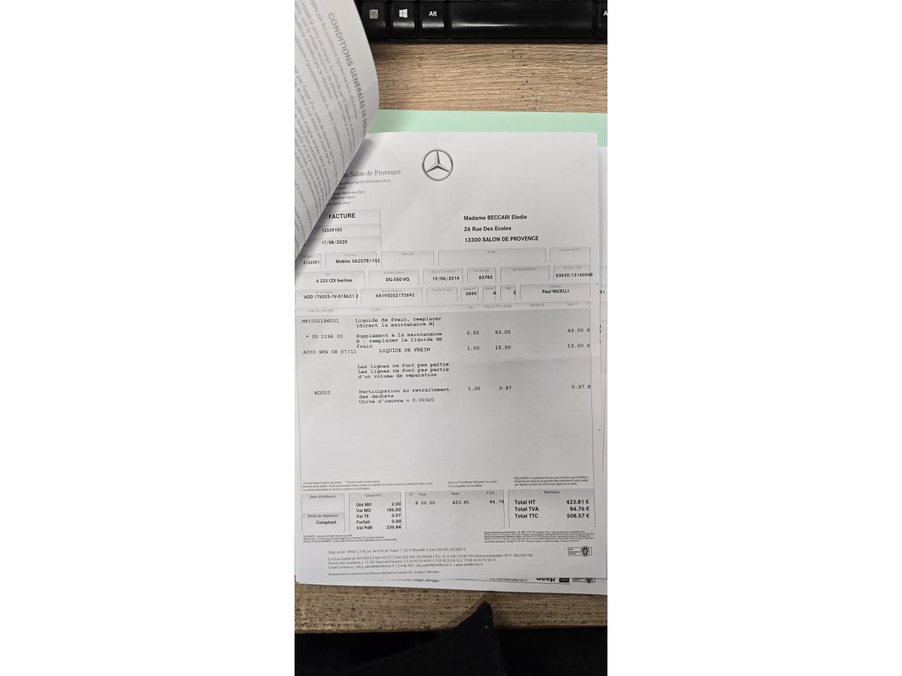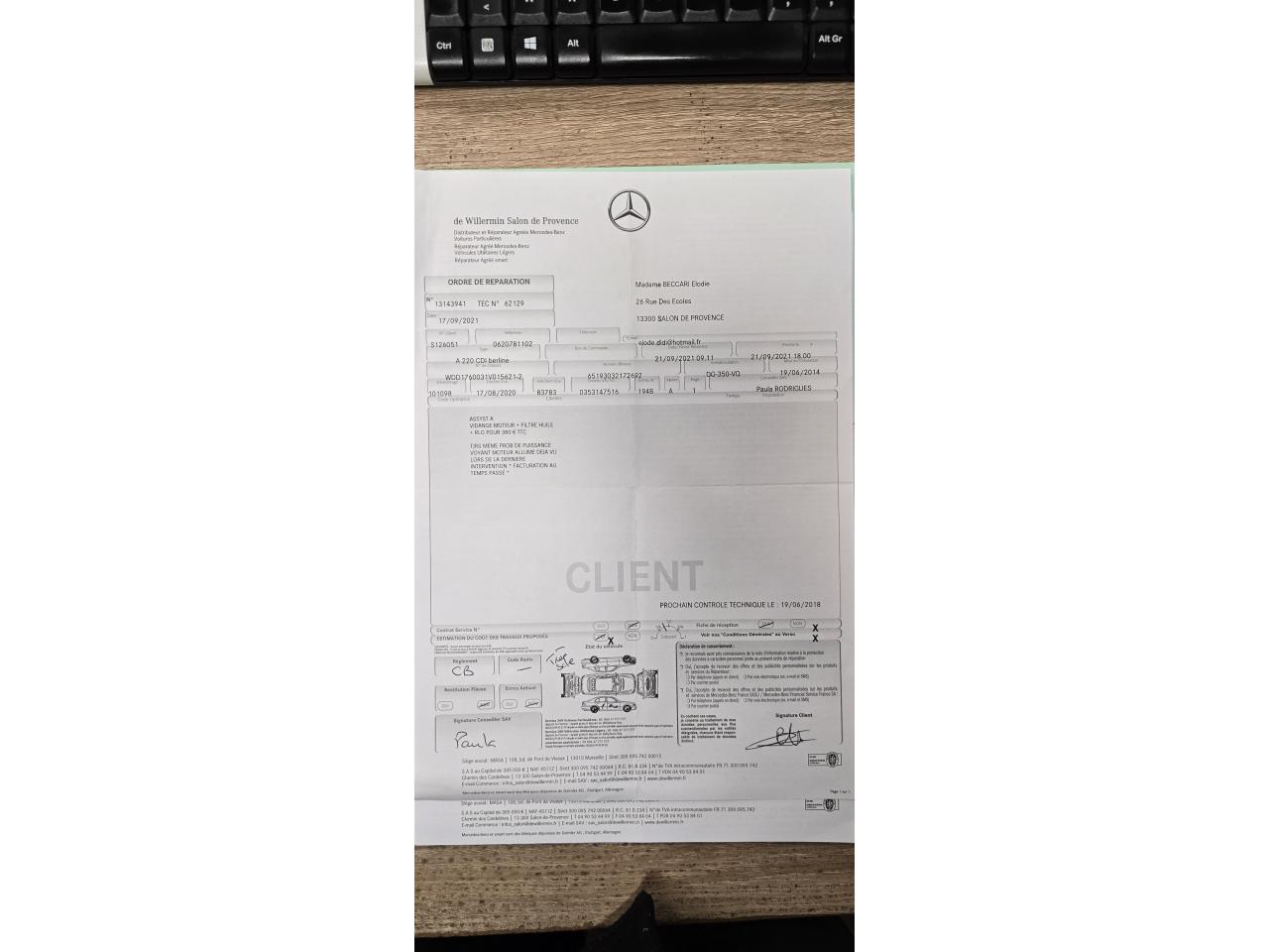 Factures d'entretien disponible