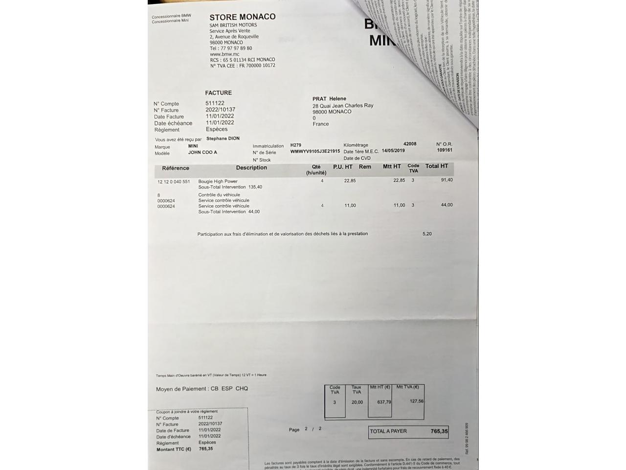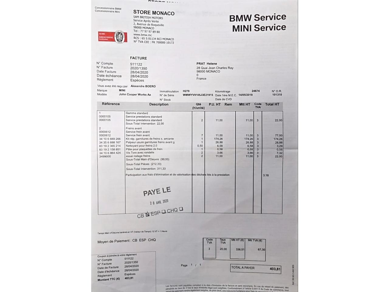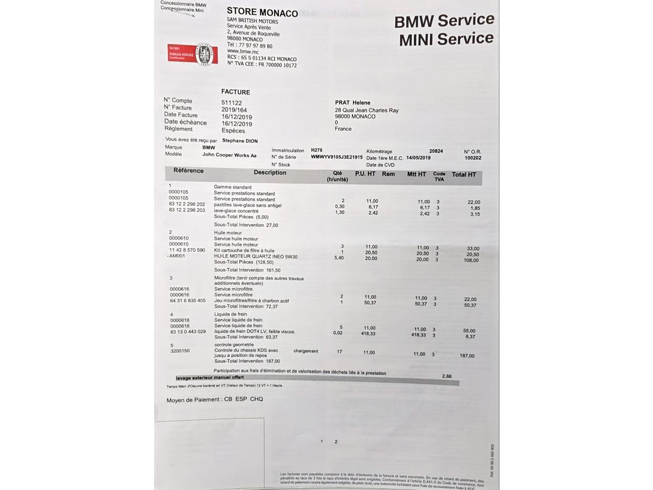 Historique MINI/BMW disponible