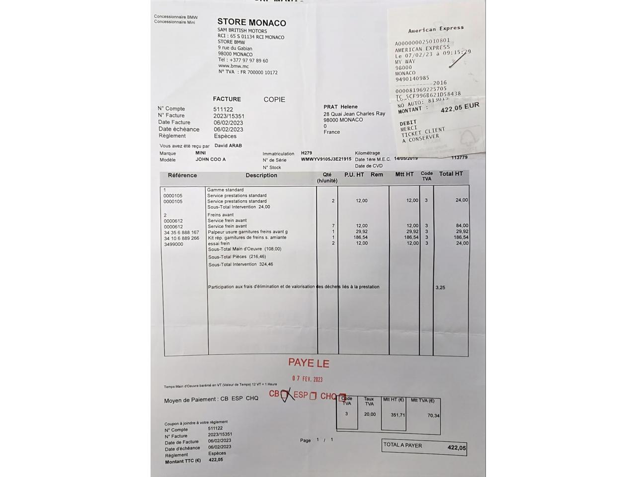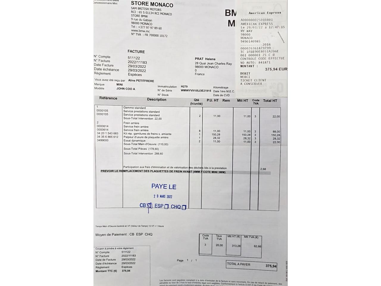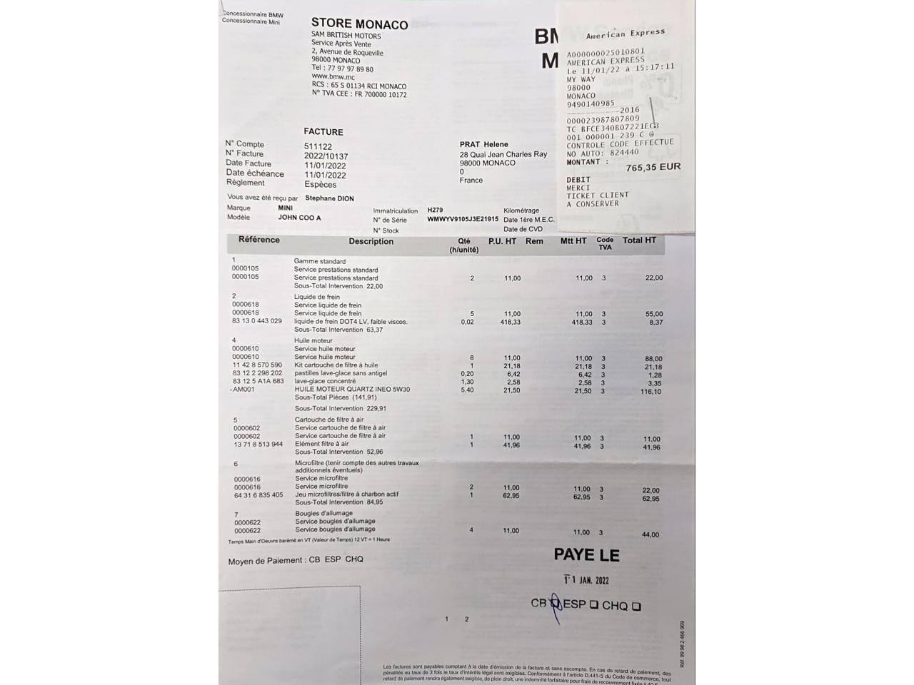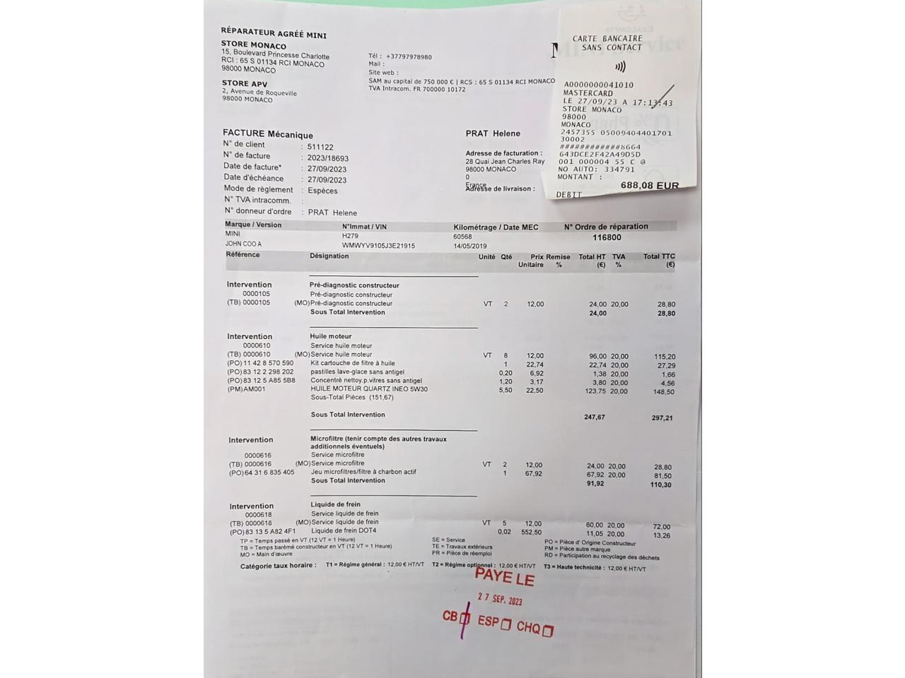 Historique MINI/BMW disponible