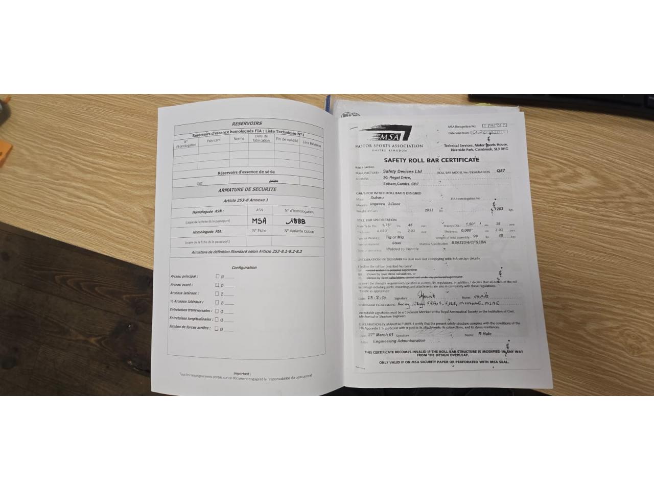 Véhicule destiné à la competition pas de carte grise