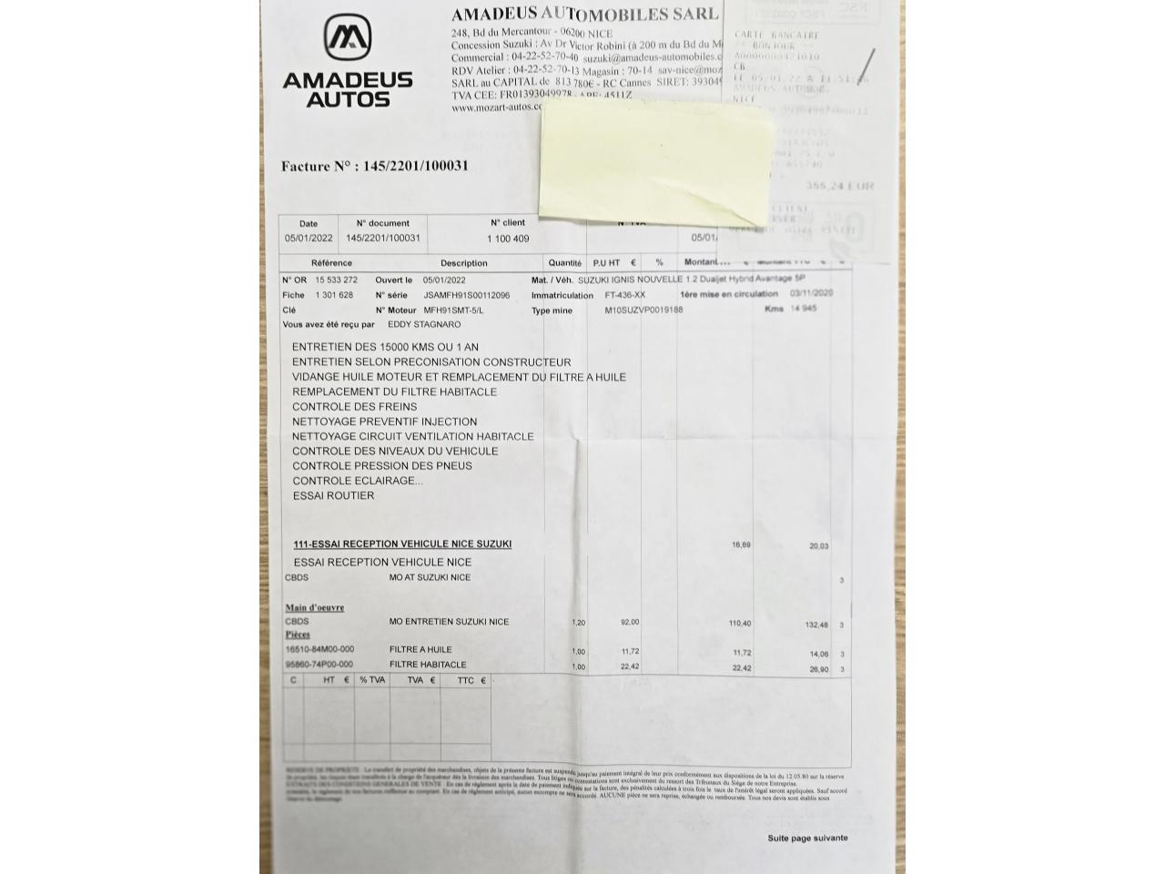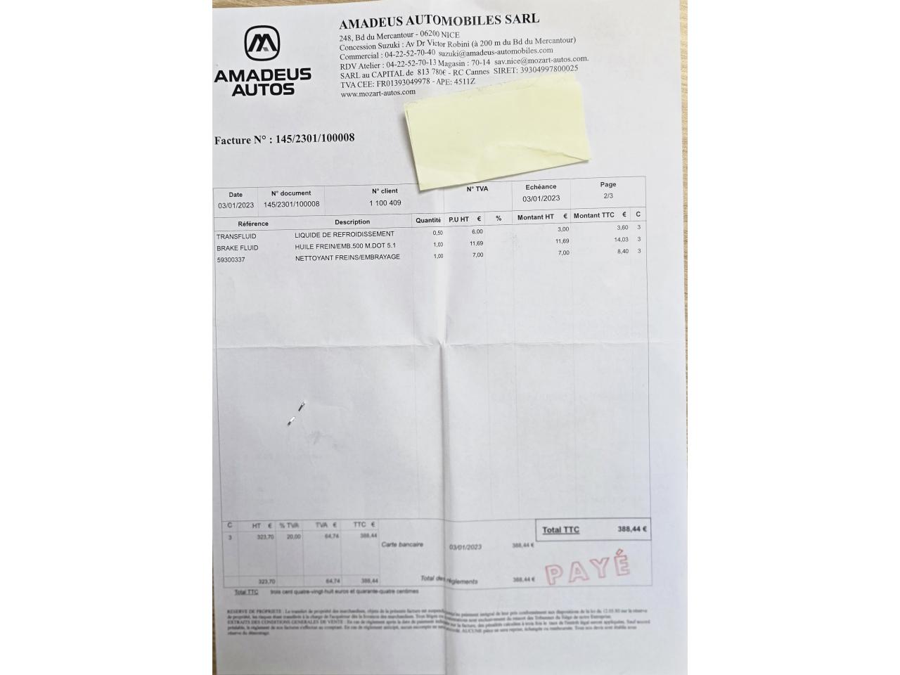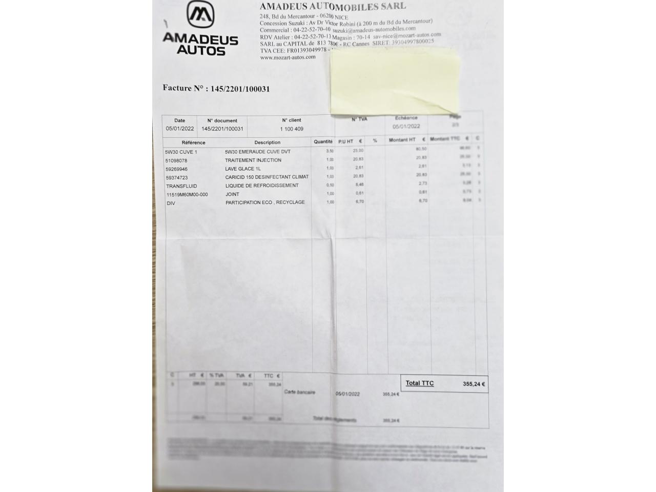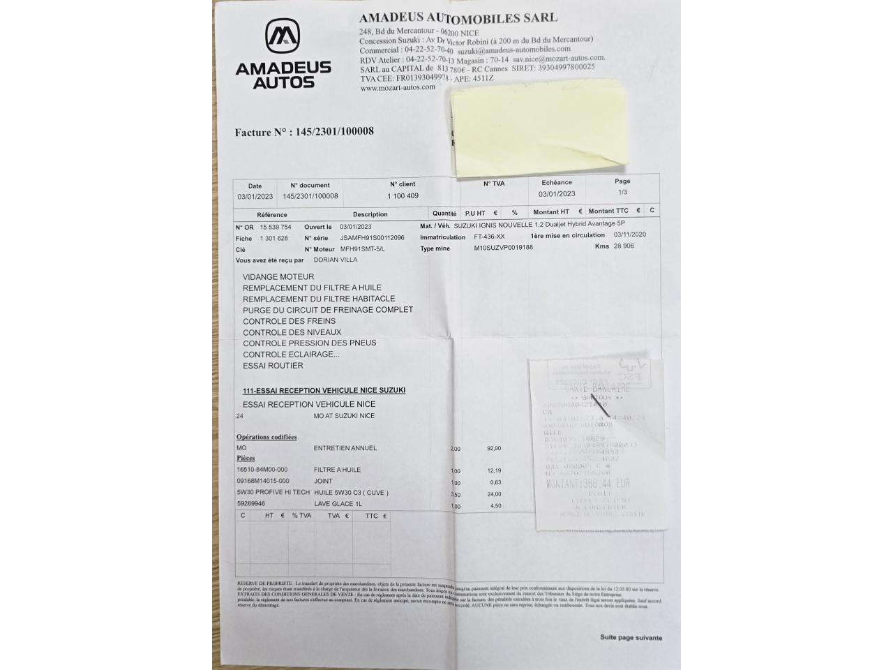 Factures d'entretien disponible