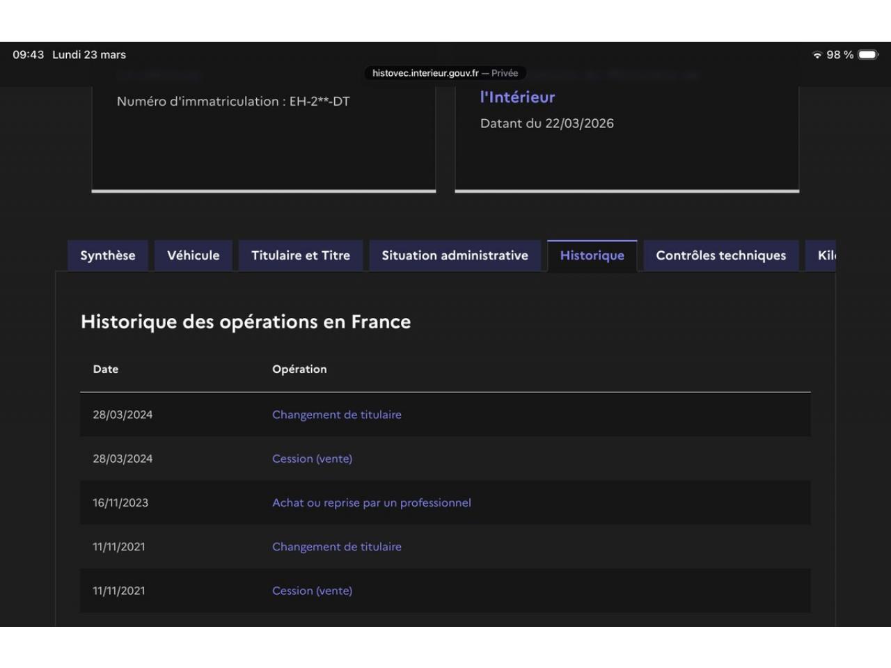 Carte grise Française